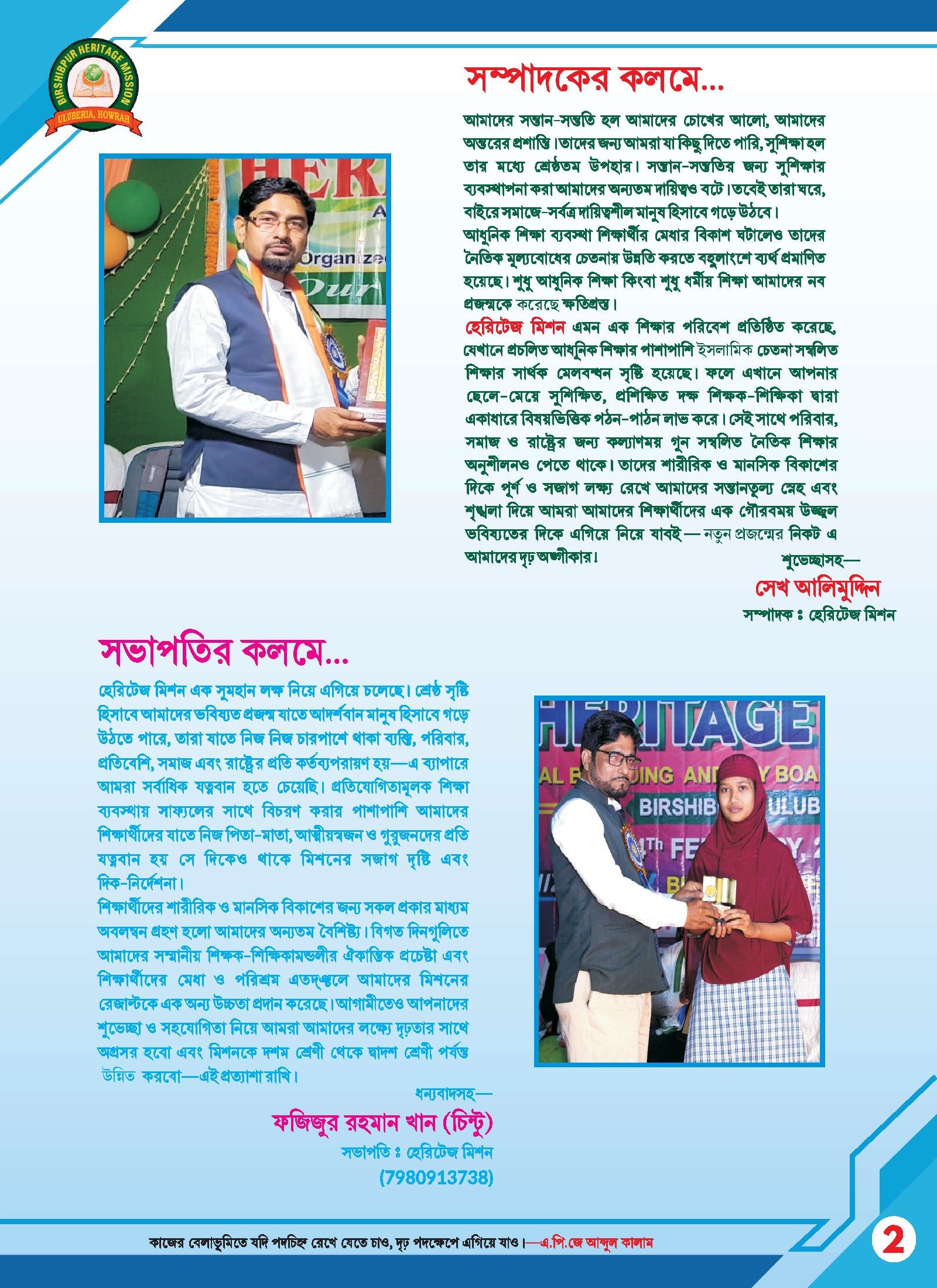 Assalamu Alaikum Warahmatullah. Heritage Mission is moving forward with a noble goal. We want to be most careful so that our future generation, as the best creation, can develop into ideal human beings, so that they are dutiful to the people around them, their families, neighbors, society and the state. In addition to successfully navigating the competitive education system, the mission also keeps a watchful eye and guides our students to be considerate of their parents, relatives and elders. Adopting all kinds of means for the physical and mental development of students is one of our characteristics. In the past few days, the dedicated efforts of our respected teachers and the talent and hard work of the students have given another height to the results of our mission in this area. In the future too, with your wishes and cooperation, we will move forward firmly towards our goal and upgrade the mission from class 10 to class 12. We hope that